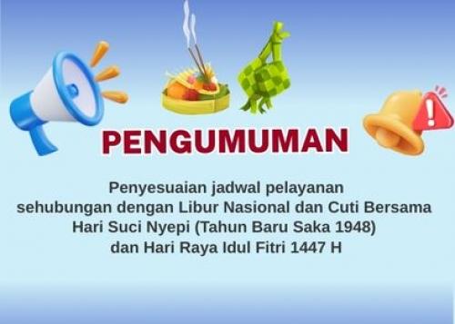 Penyesuaian jadwal pelayanan - Libur Nasional & Cuti Bersama Hari Suci Nyepi & Hari Raya Idul Fitri