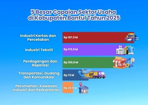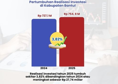 Sepanjang tahun 2025, Kabupaten Bantul telah mencatatkan kinerja investasi yang sangat positif, dengan dilihat dari total realisasi investasi yang mencapai Rp 754,8 miliar, atau telah tercapai 177,62% dari target yang telah ditetapkan Kementerian Investasi dan Hilirisasi/BKPM. Hal ini mencerminkan semakin kuatnya daya saing dan kepercayaan investor terhadap Bantul.