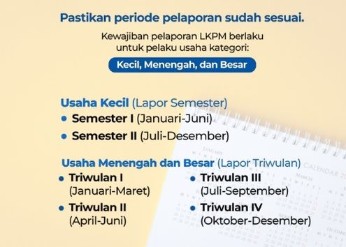 Pastikan periode pelaporan sudah sesuai. Kewajiban pelaporan LKPM berlaku untuk pelaku usaha kategori: